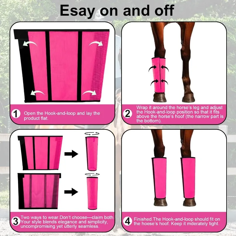 | Feature | designed to shield your horse’s legs from flies, insects, and irritation during riding or turnout, The secure wrap design ensures a snug fit without restricting movement |