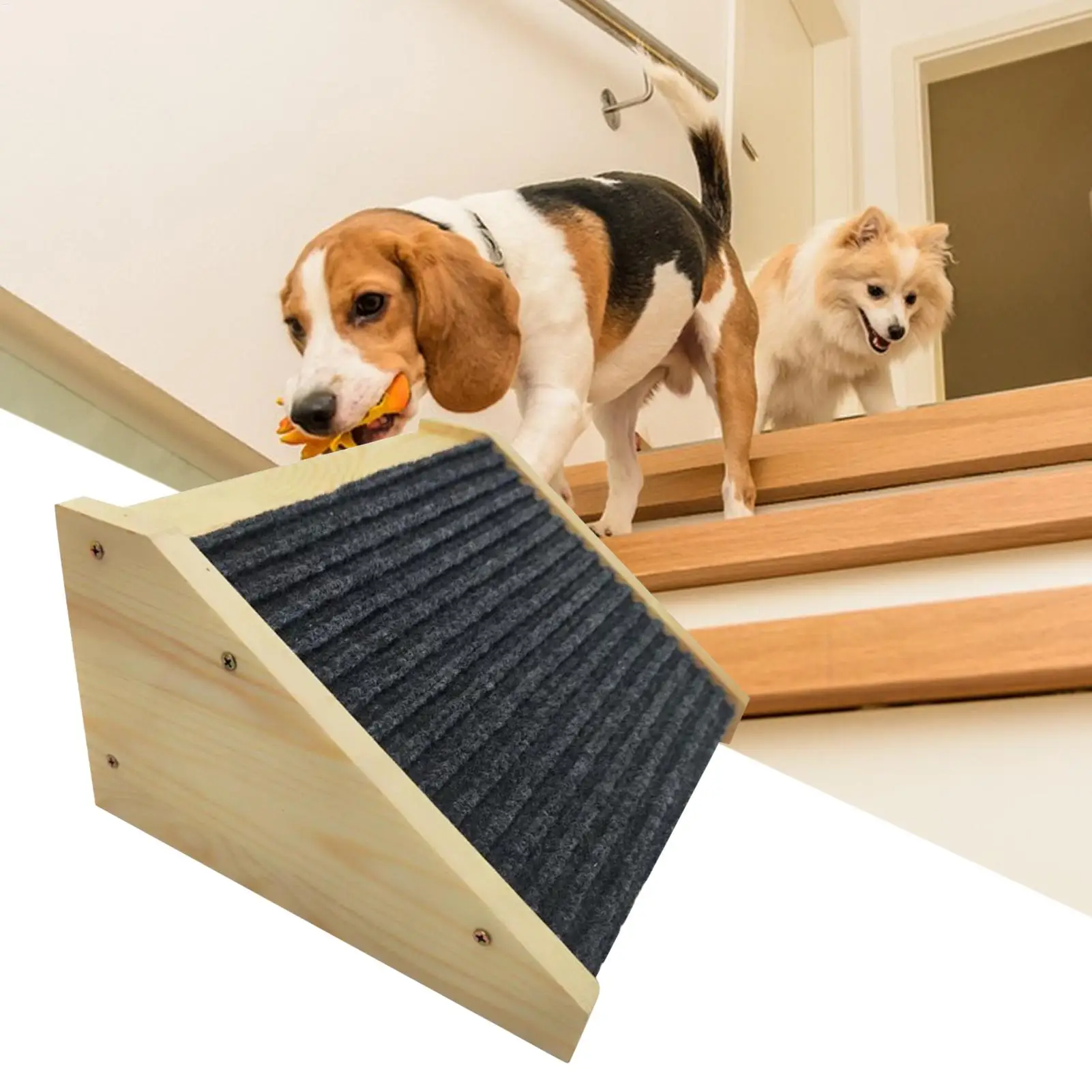 This portable wooden dog ramp is designed to help cats and dogs safely access couches, beds, or other elevated surfaces. Made from durable wood with an anti-slip surface, it ensures stability and prevents accidents while climbing. Lightweight and easy to move, the ramp is ideal for indoor use and provides support for pets with mobility issues, small breeds, or older animals. Combining safety, durability, and convenience, it’s a practical solution for improving your pet’s accessibility and comfort.